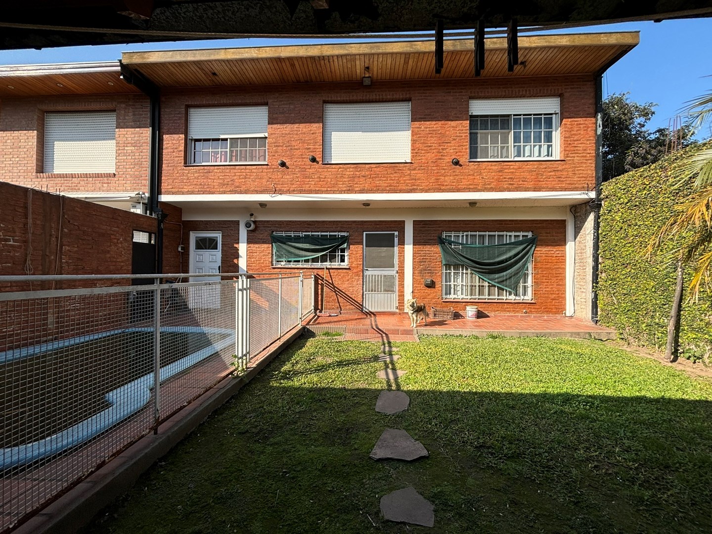 Living en doble altura. Cocina totalmente amoblada, comedor. Baño. Lavadero y cochera para un auto. Hermoso fondo libre con pileta y quincho con parrilla, baño y cuarto guarda útiles.
